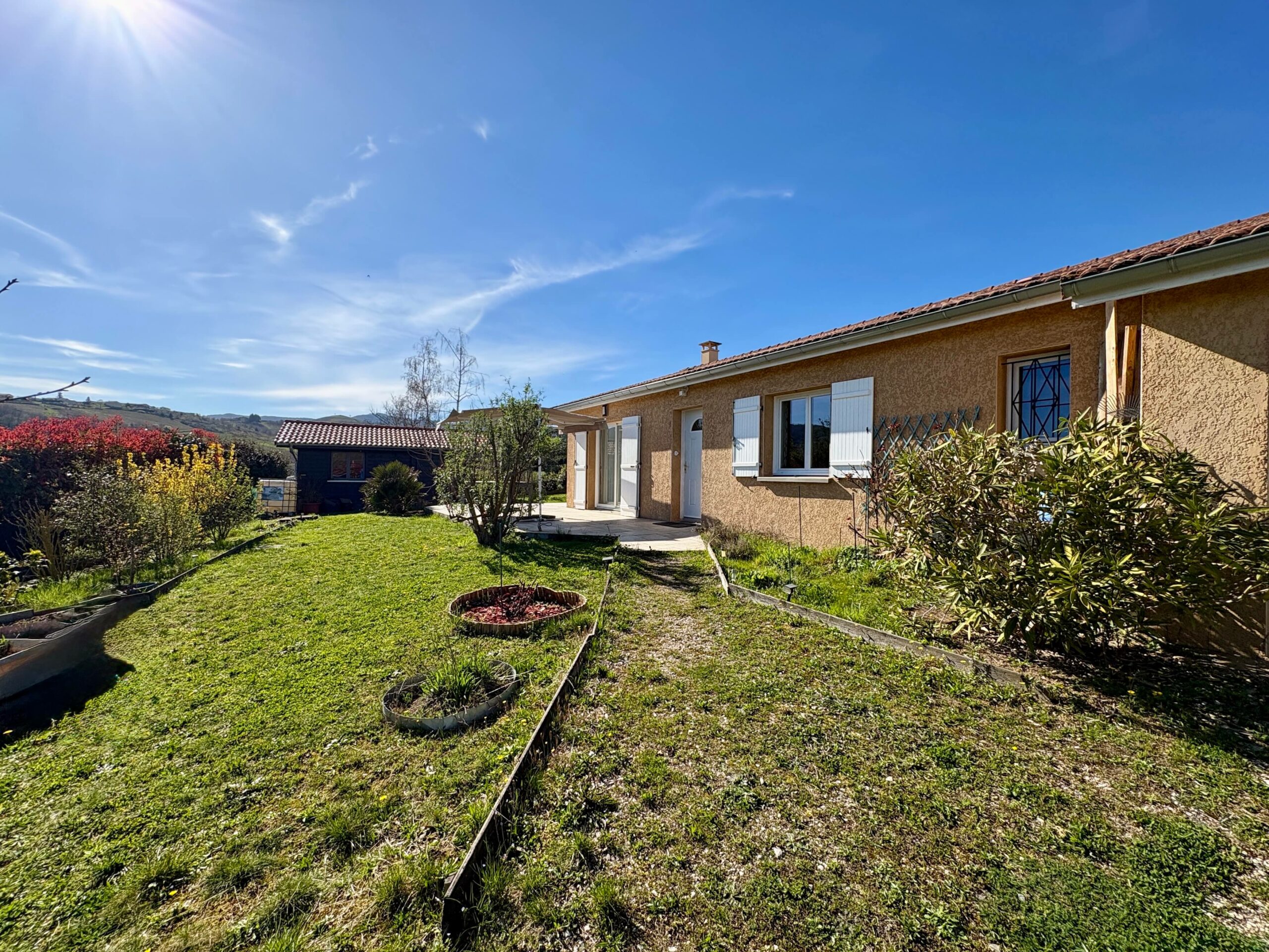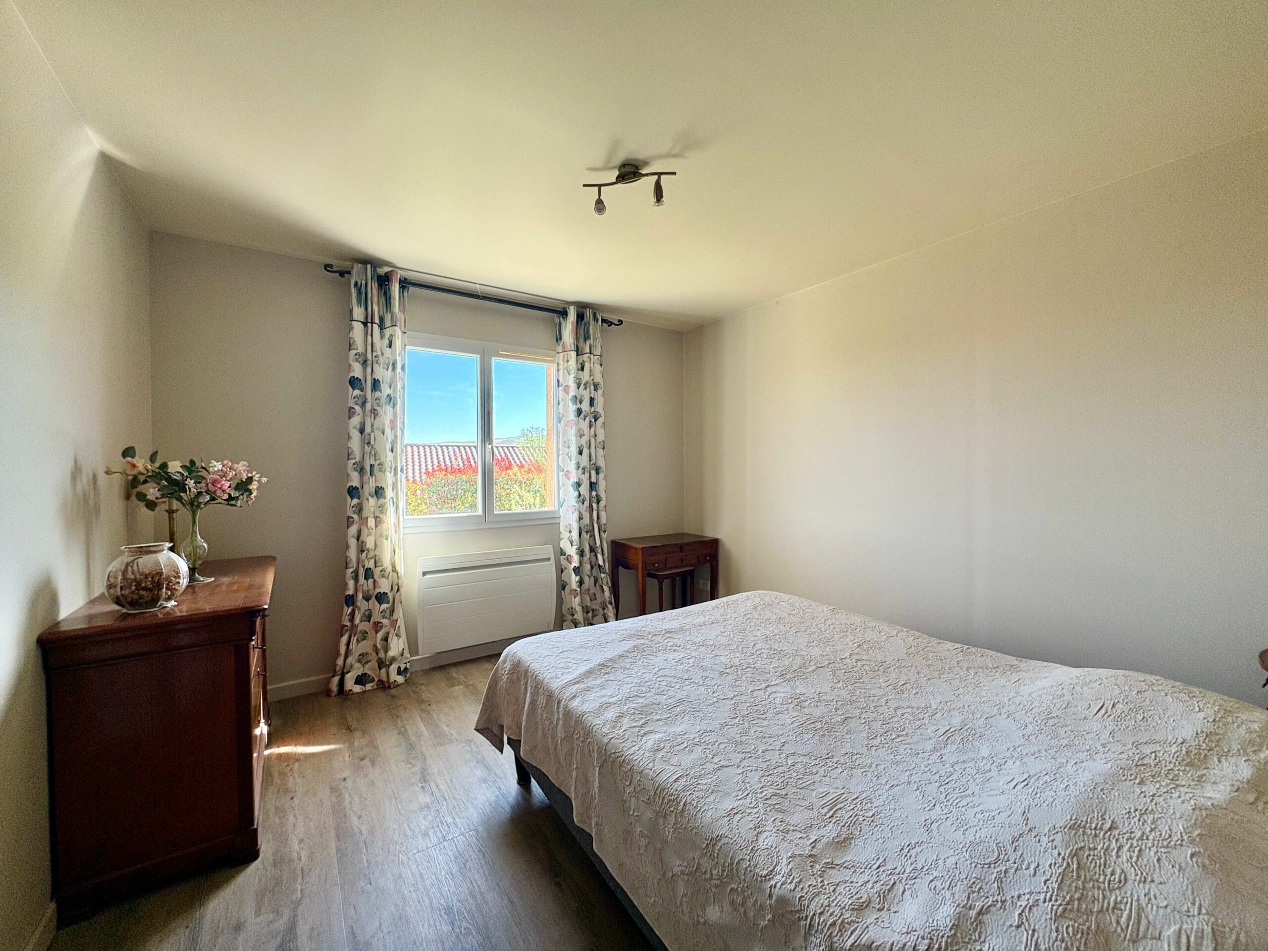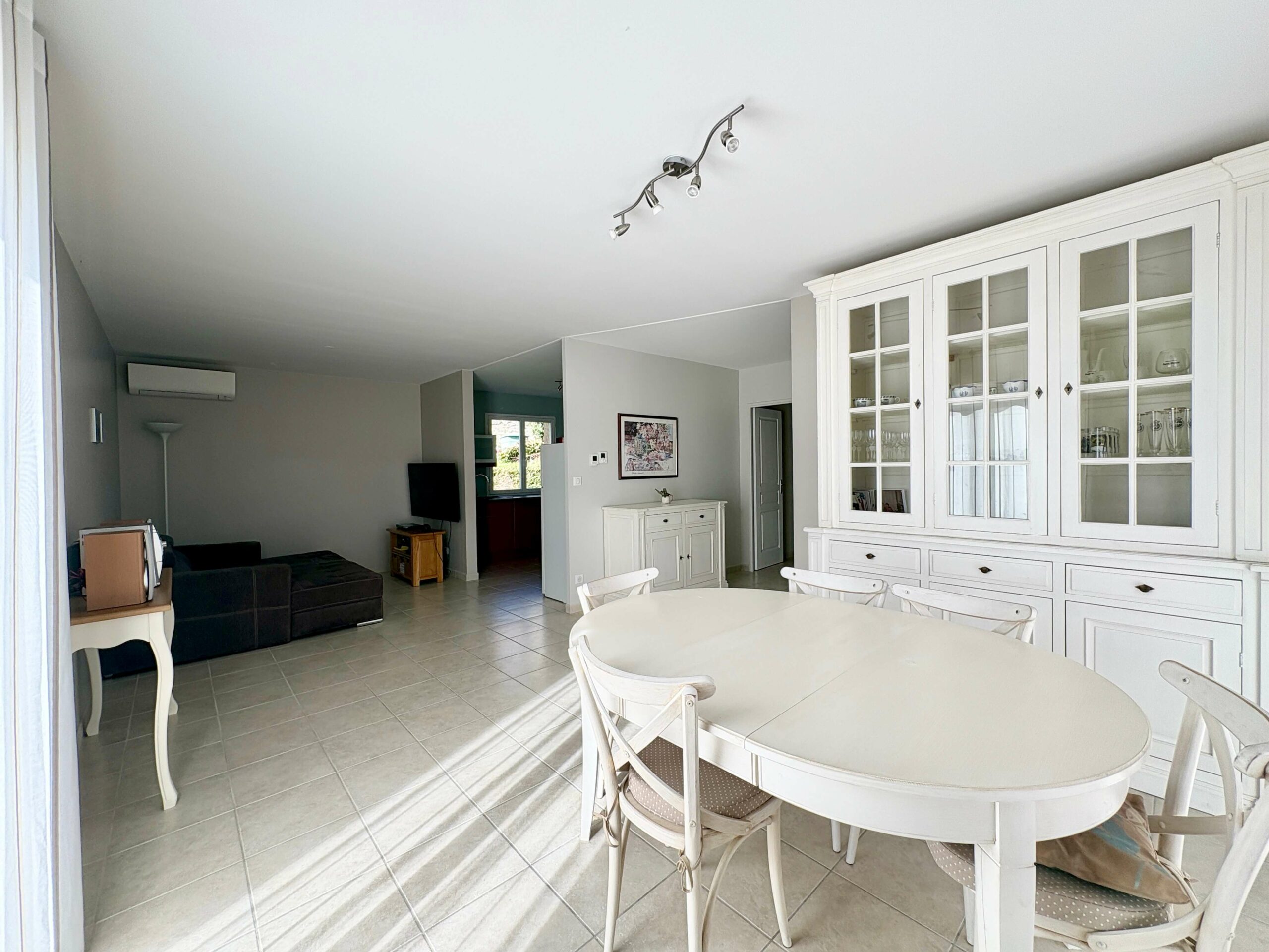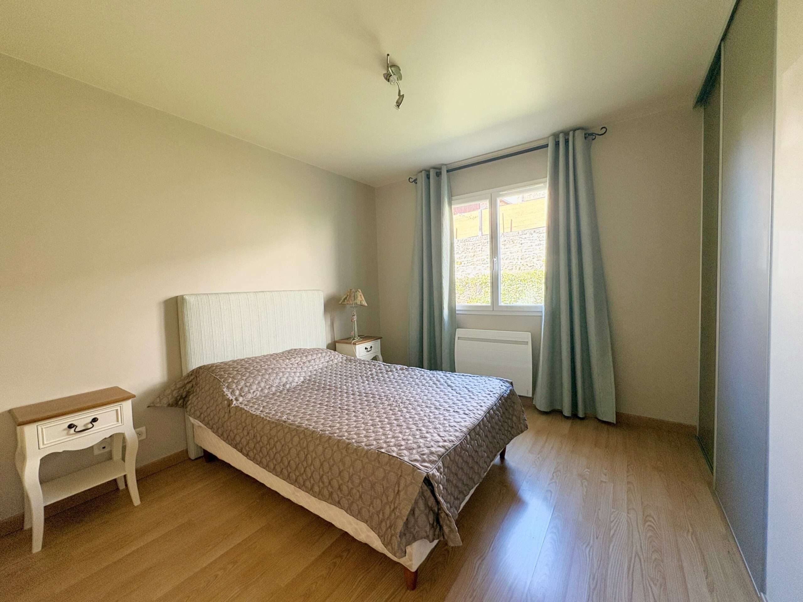 Ce bien dispose d’une pièce de vie avec cuisine semi ouverte et d’un accès sur la terrasse. La partie nuit se compose de trois chambres et une salle d’eau.